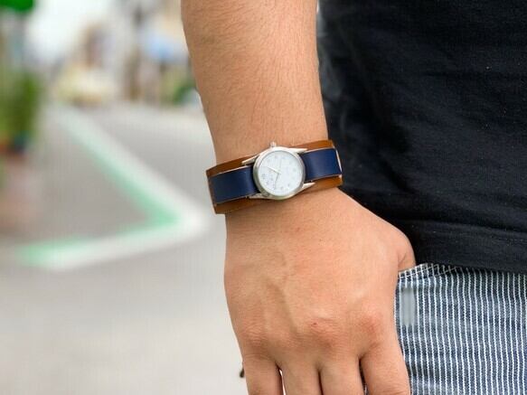 太ベルトと細ベルトからなるカジュアルなバングルウォッチ