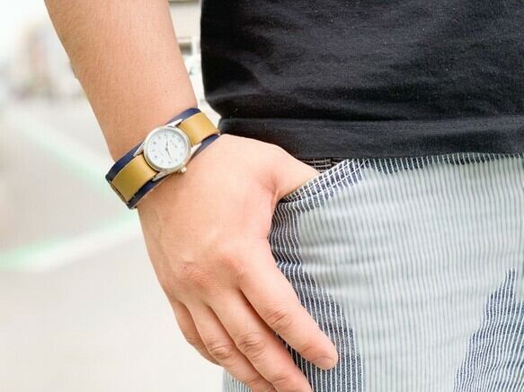 太ベルトと細ベルトからなるカジュアルなバングルウォッチ