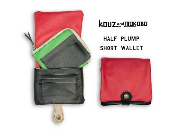▲H-PLUMP クールな黒とポップのバイカラー「ハーフプランプ 財布」ふっくら(HPW-RRKK-GKK-K)