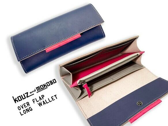 ▲OVER わたしの定番☆ダークトリコロール「オーバーフラップ 長財布」スマホも入る(OFW–NHH–RHR–H)