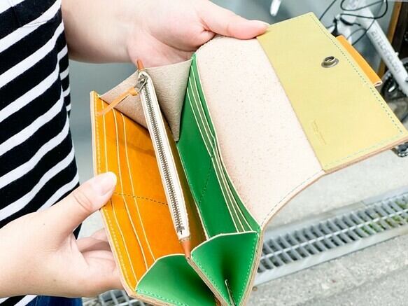 ころん。としたフォルムと大きく開くマチが特徴的な長財布