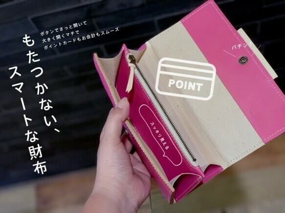ころん。としたフォルムと大きく開くマチが特徴的な長財布