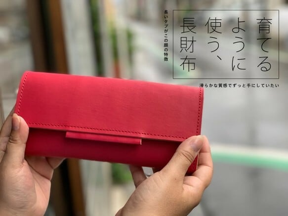 ころん。としたフォルムと大きく開くマチが特徴的な長財布