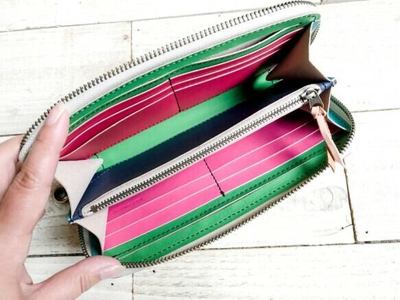 シンプルな見た目に反して、ファスナーを開けると一瞬にして広がる色の世界感にうっとり。