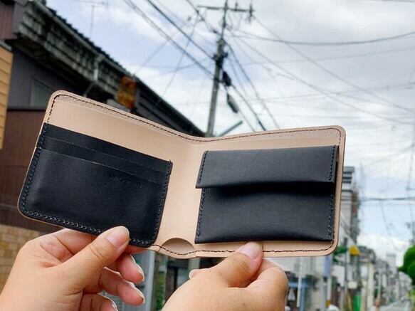 クールなブラックと染色なしのヌメ革のシンプルなバイカラー