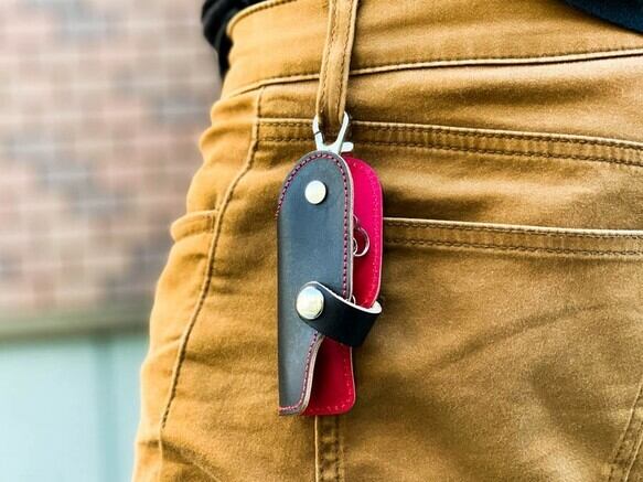 ▲SLIDE 絶対かっこいい赤×黒のバイカラー「スライドガン キーケース」スマートキーもOK(SGK-KRK-R)