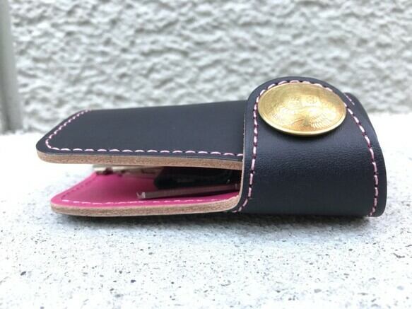 コンチョのボタンが一際、目を引くレザーキーケース