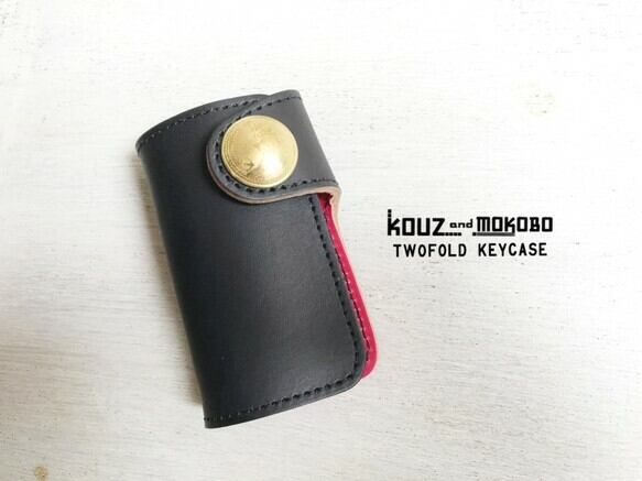 ▲TWOFOLD クールでカッコイイ黒×赤「ツーフォルド キーケース」アシメデザイン☆(TFK-KR-KSh)