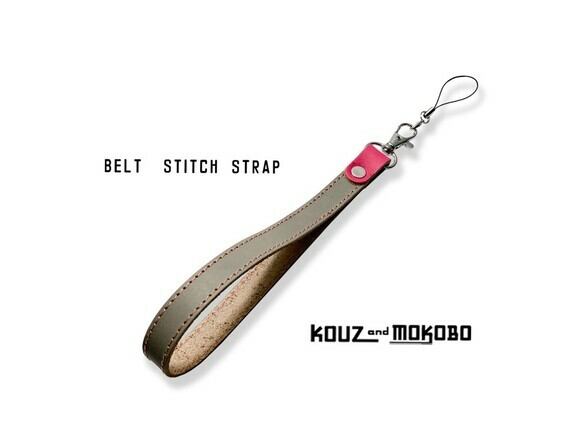 ▲BELT 無機質なグレーの女子力↑「ベルトステッチ ロングストラップ」大きいわっか(BSS-HP-P)