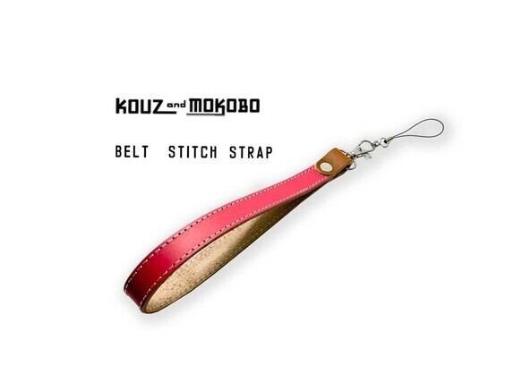 ▲BELT かわいいがこぼれる赤色「ベルトステッチ ロングストラップ」ポーチの持ち手にも(BSS-RB-W)