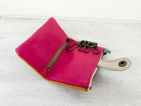 どこか懐かしくて温かい気持ちにさせてくれる夕焼け色を感じるぬくもりのあるキーケースに仕上がりました。