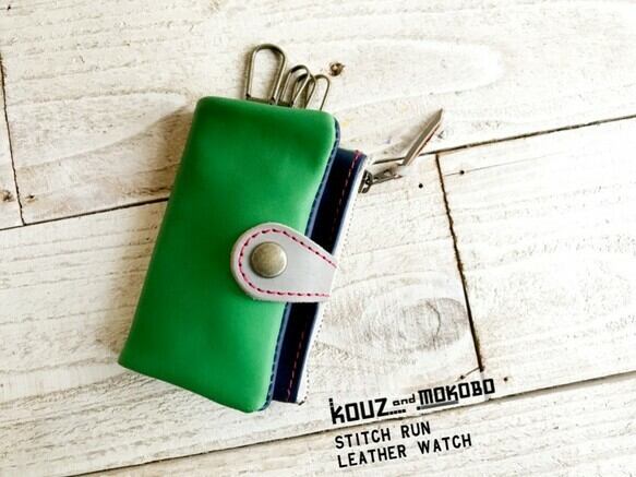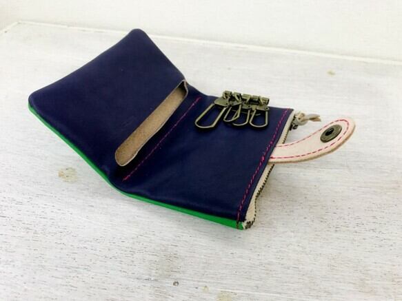 カギは4本収納でき、背面はファスナー付きの小銭入れになっているので、