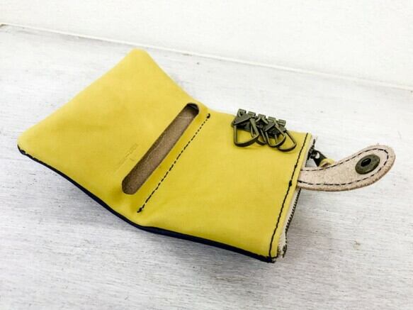カギは4本収納でき、背面はファスナー付きの小銭入れになっているので、