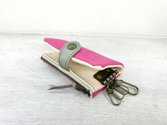 カギは4本収納でき、背面はファスナー付きの小銭入れになっているので、