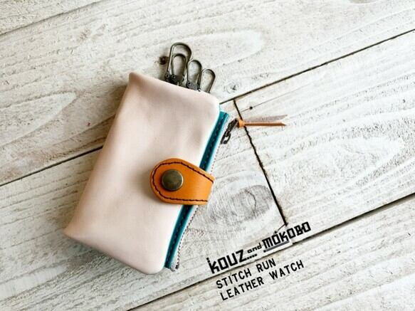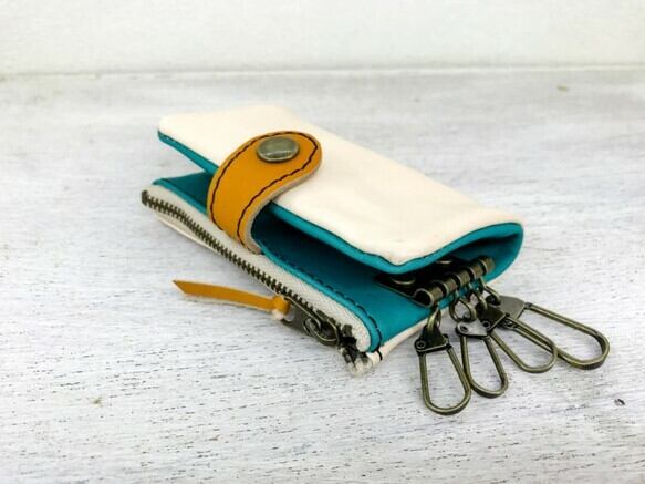 カギは4本収納でき、背面はファスナー付きの小銭入れになっているので、